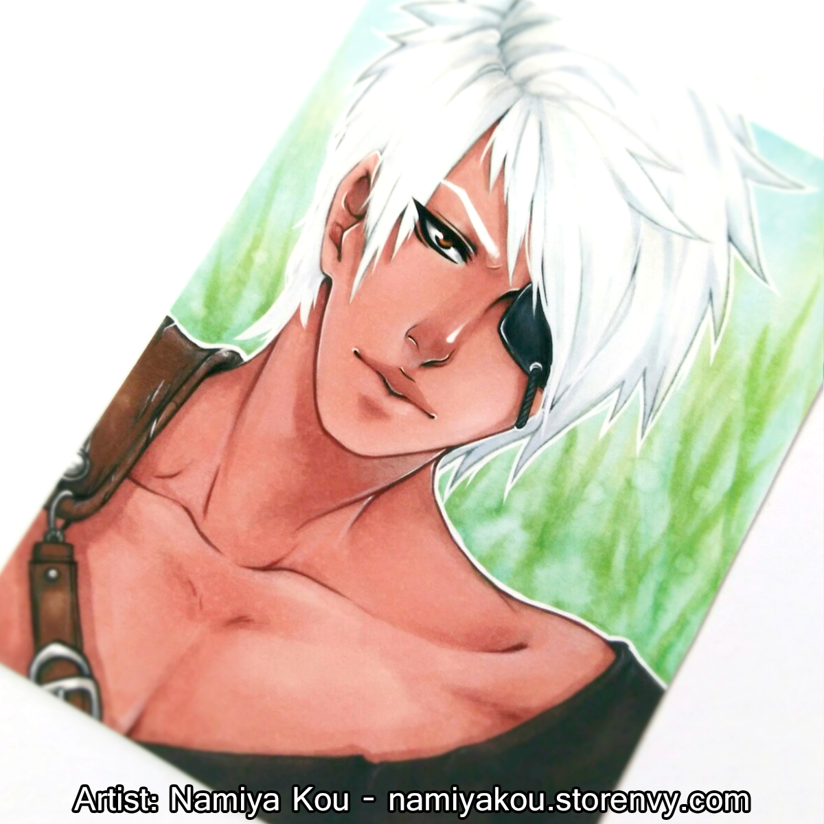 ACEO print showing a good looking warrior boy with bright white hair!