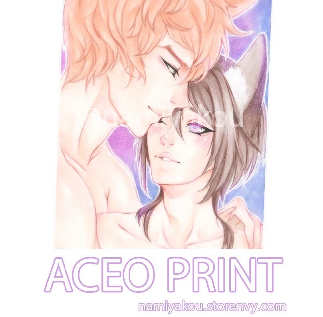 ACEO Print showing a cute catboy couple!