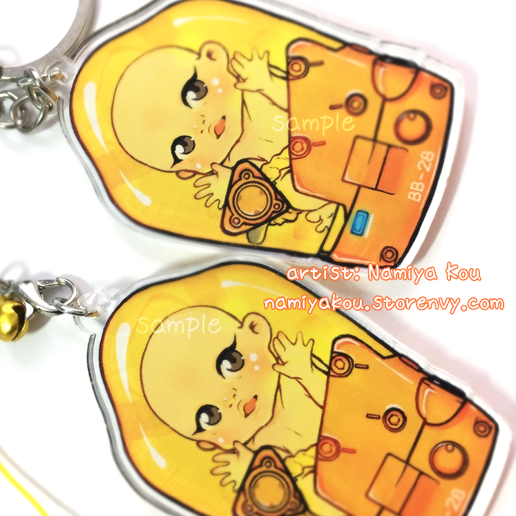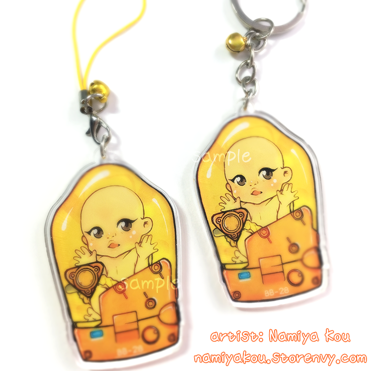 Adorable double sided acrylic charm showing B.B. 28 from the Kojima Productions game Death Stranding in its pod!