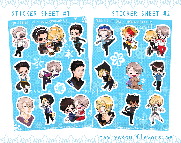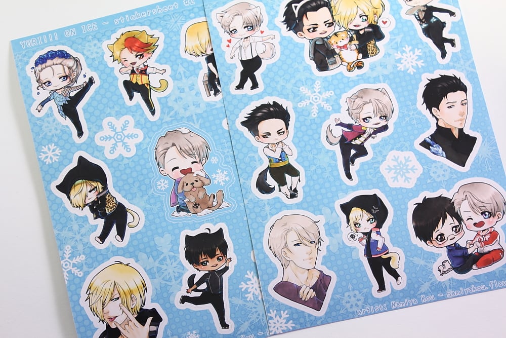 2 sticker sheets showing all my Yuri on Ice drawings!
