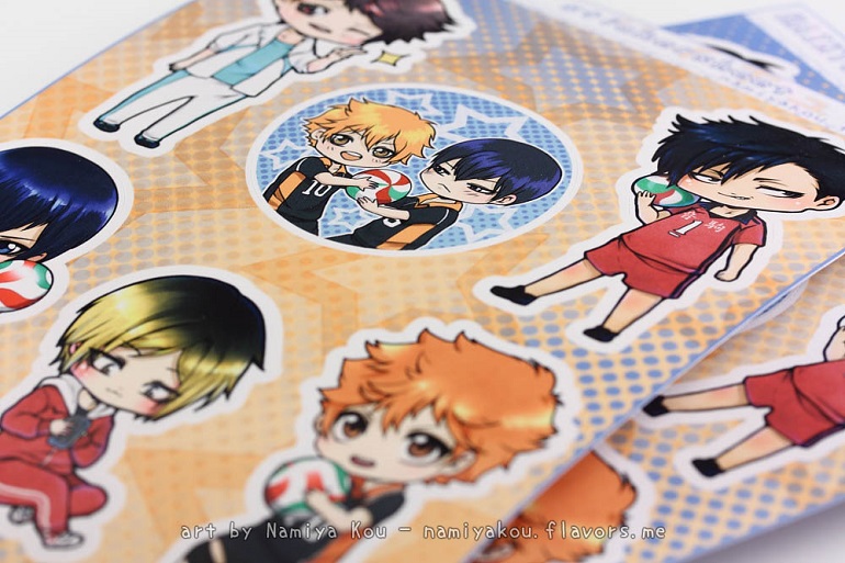 Stickersheet about 4 by 6 inches in size (10 by 15 cm), with a total of 6 cute Haikyuu chibi stickers.