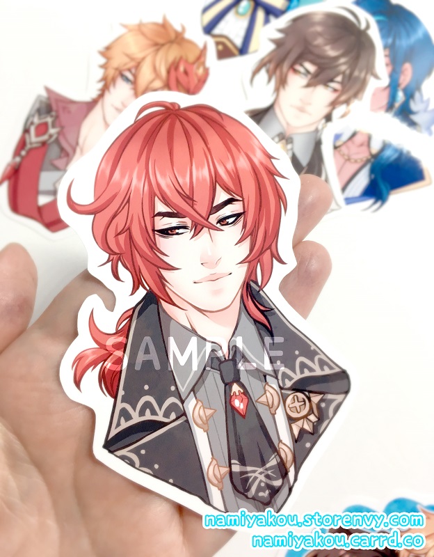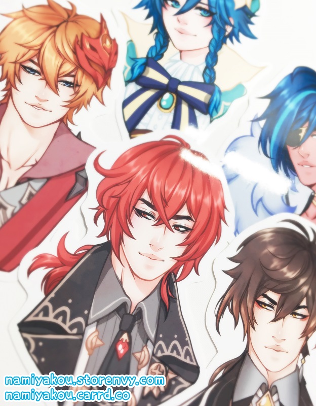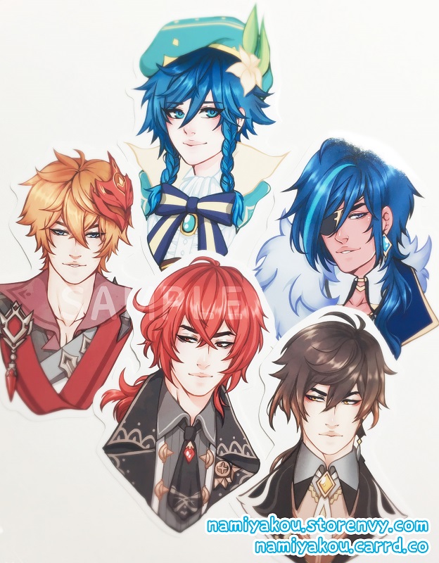 Large glossy vinyl stickers featuring Genshin characters!