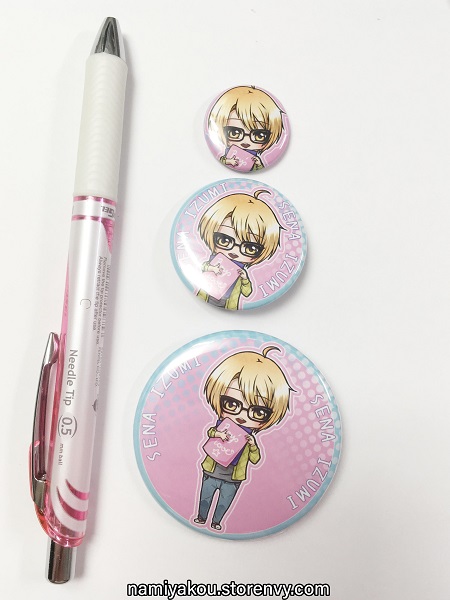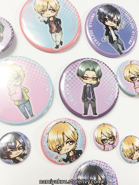 Cute Buttons with Love Stage!! characters Sena Izumi, Ichijou Ryouma, Sena Shougo and Sagara Rei.