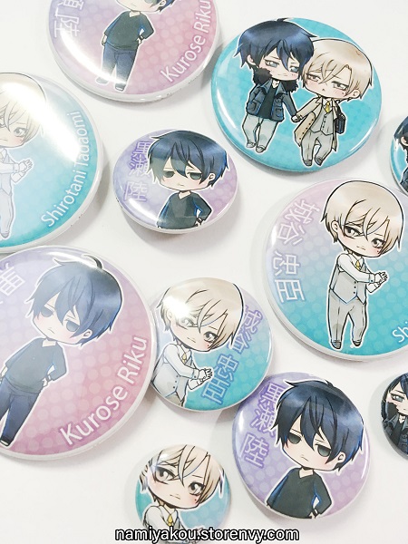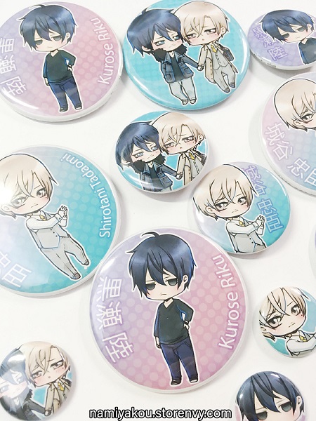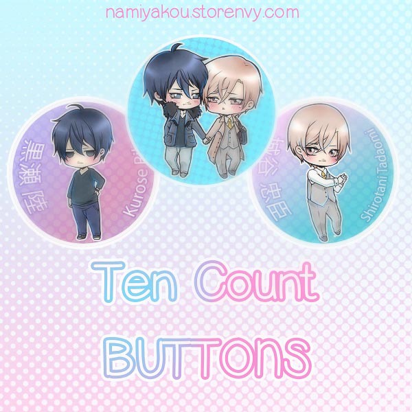 Ten Count buttons showing Shirotani Tadaomi and Kurose Riku as chibis!