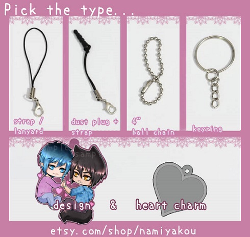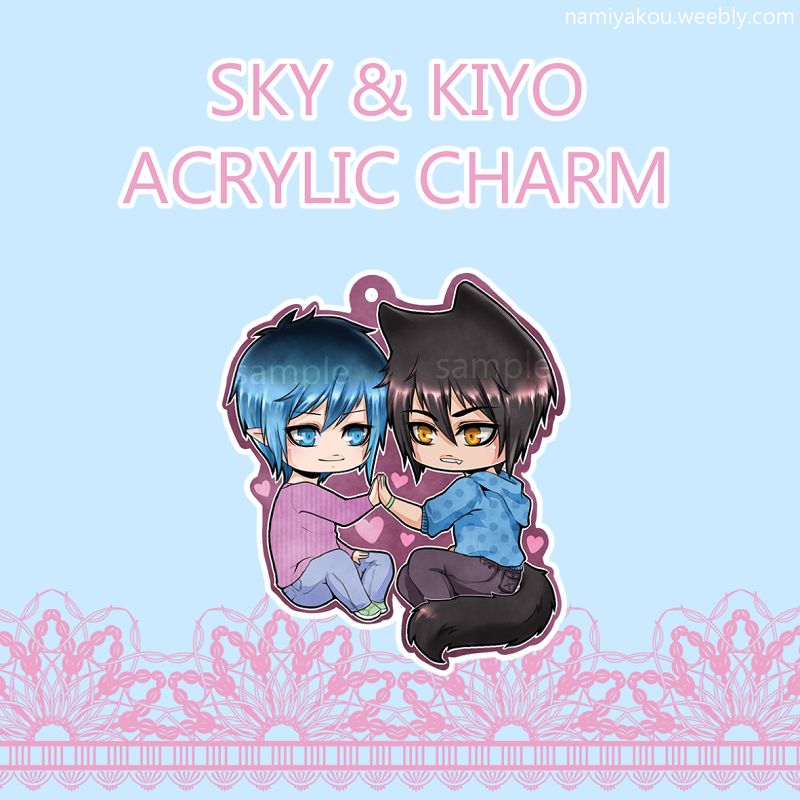 The charm shows my original characters Sky and Kiyo!