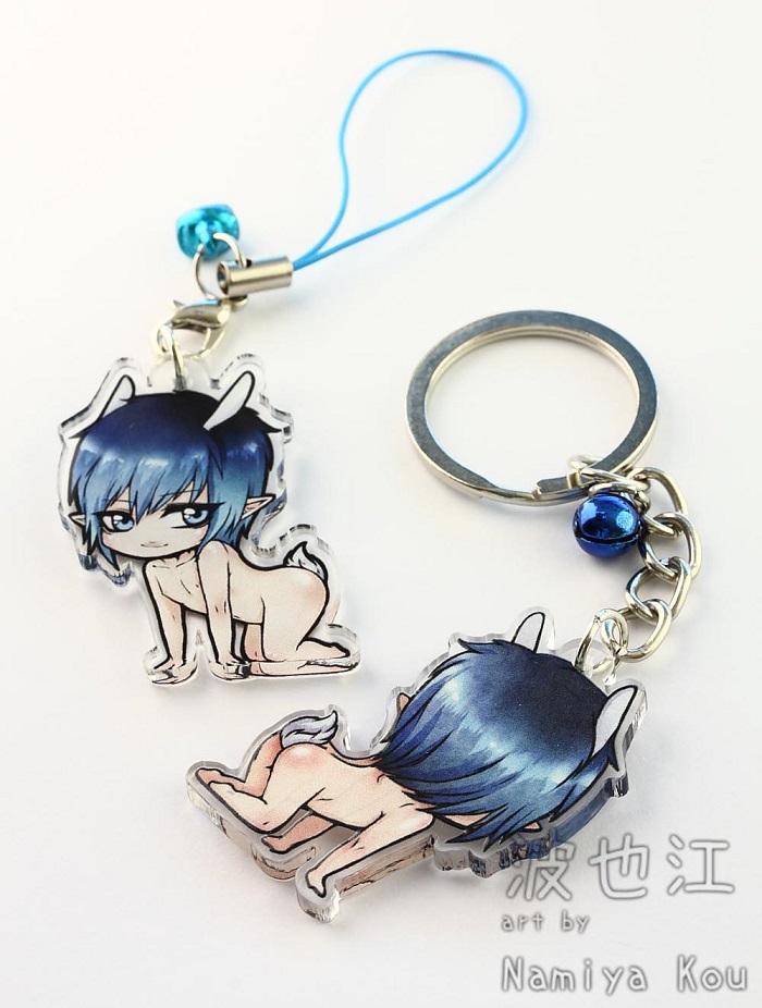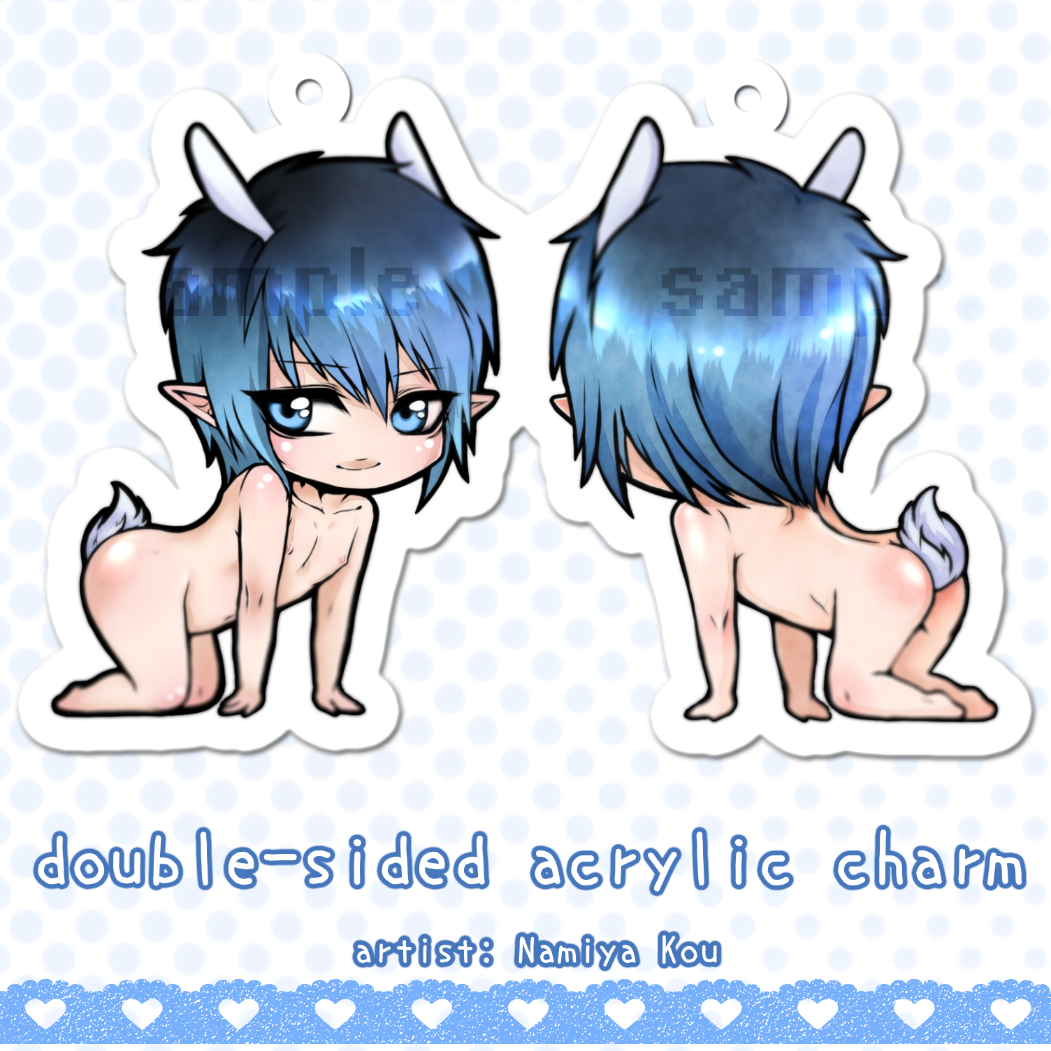 This acrylic charm is about 1.5" (4 cm) in size and double-sided, showing the character from the front and back.