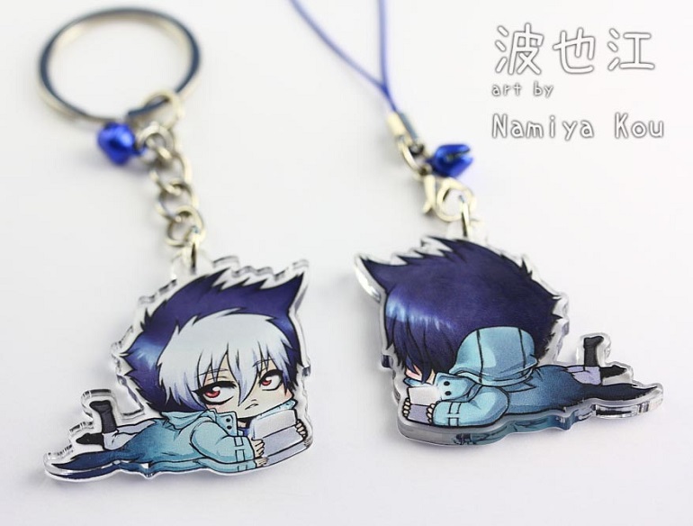 Charm showing Kuro from Servamp! The charm is about 1.5" in size (4 cm) and double-sided, showing the character from the front and back.