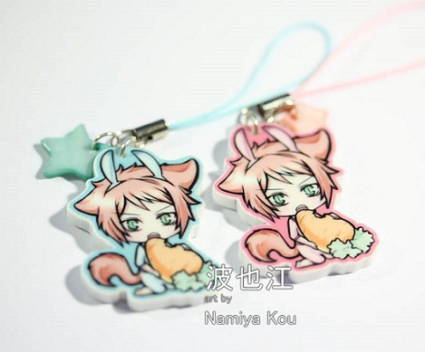 The charm shows my catboy OC Miki in his Easter outfit wearing a bunny-ear jumper.