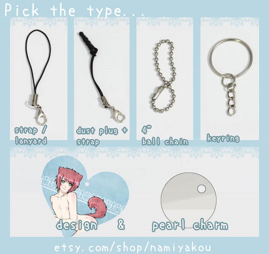 You may pick between getting it on a phone strap, strap with dust plug, ball chain or key ring!