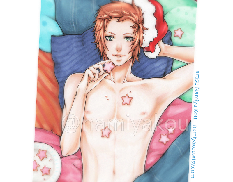 Print of my artwork 'Xmas: Rin' showing my OC Rin with cookies~
