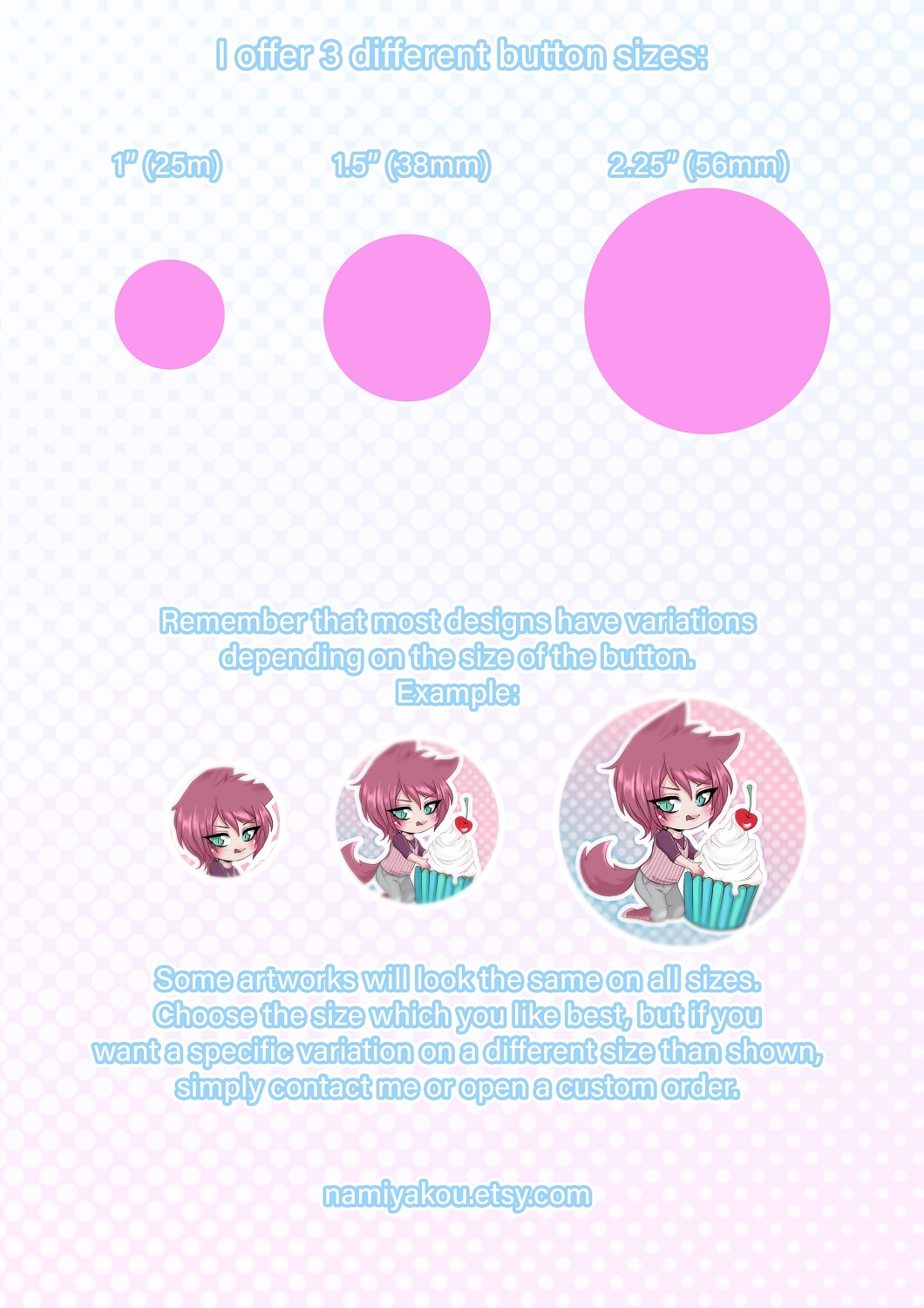 You can buy all these buttons individually as well if you don't want a full set, or if you want to mix sizes! Just check my shop's "Buttons" and "Discounts" sections!