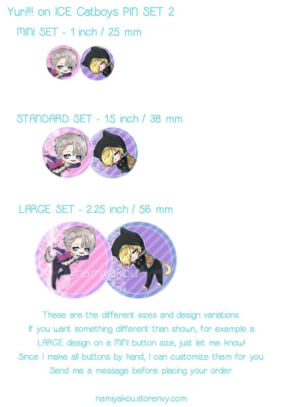 Buttons showing Yuri!! on ICE characters with cat ears and tail!