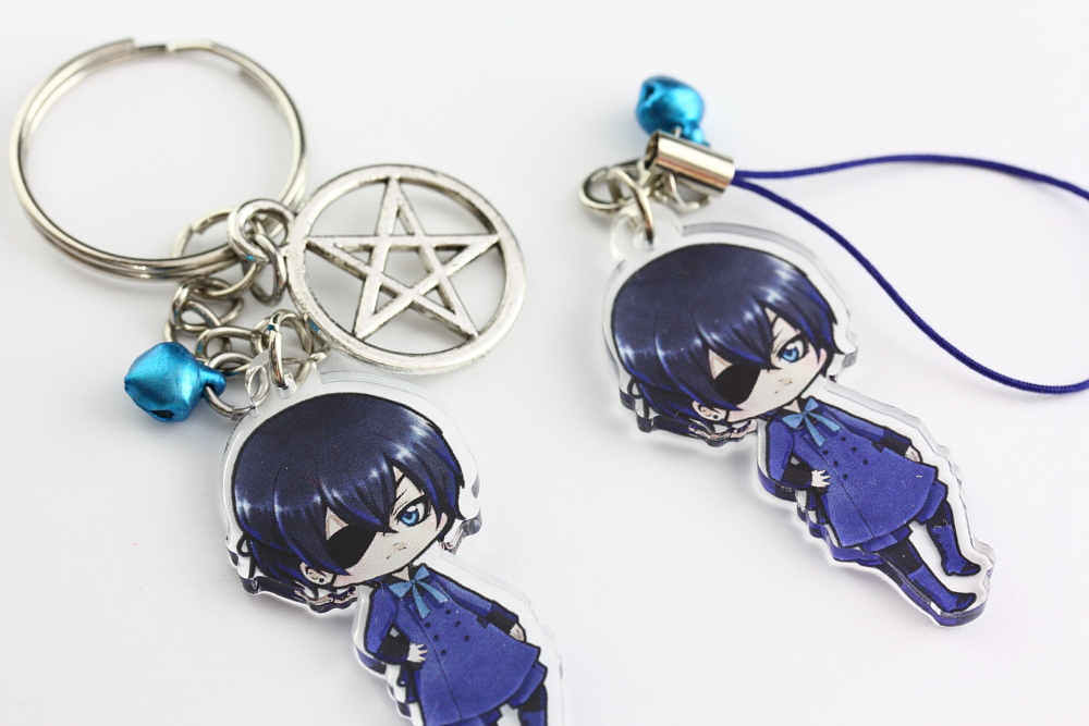 Cute acrylic charms showing Ciel and Sebastian from Kuroshitsuji!