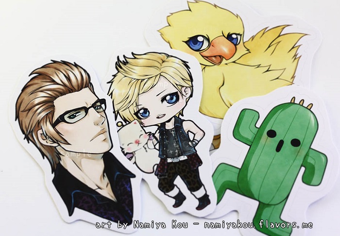 Stickers are between about 2 and 3 inches in size (5-8 cm) and on glossy paper.