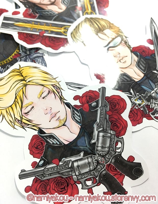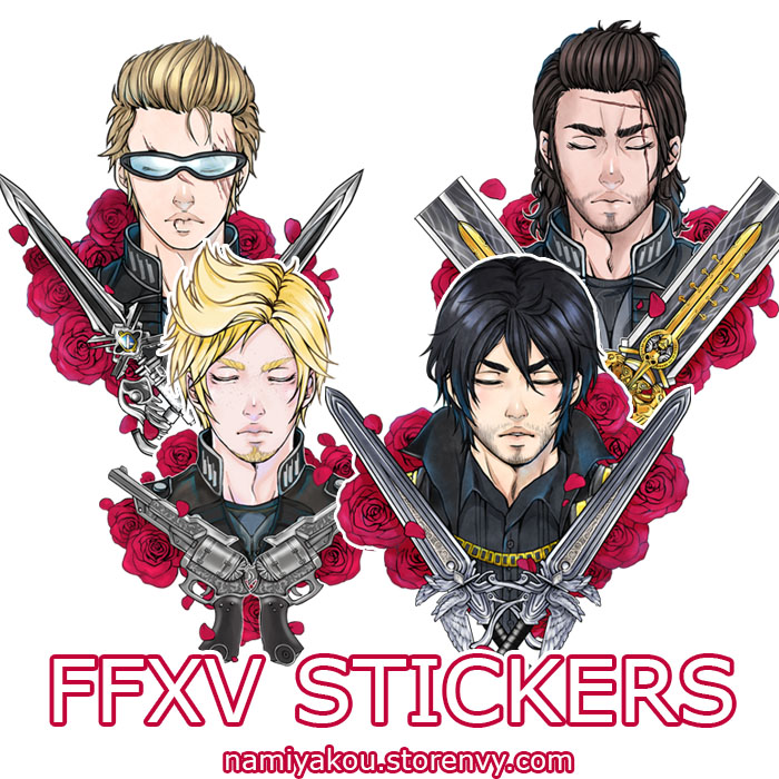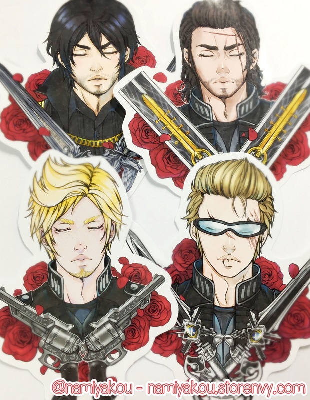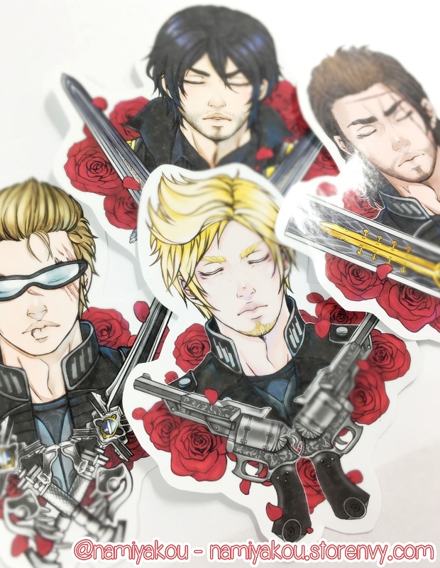 These large Final Fantasy XV stickers are about 4" tall (10 cm) and printed on glossy paper.