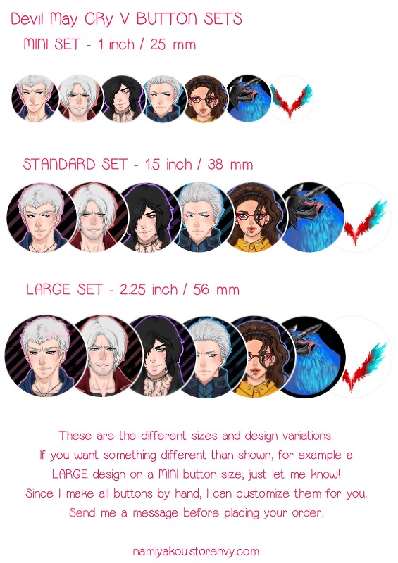 If you don't want this full set, or want to mix sizes, please use my other button listings in my shop under "Buttons" or "Discounts"!