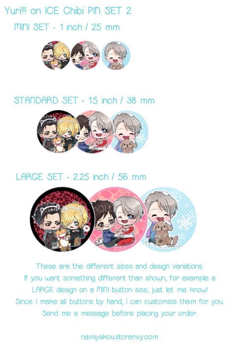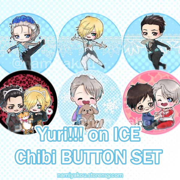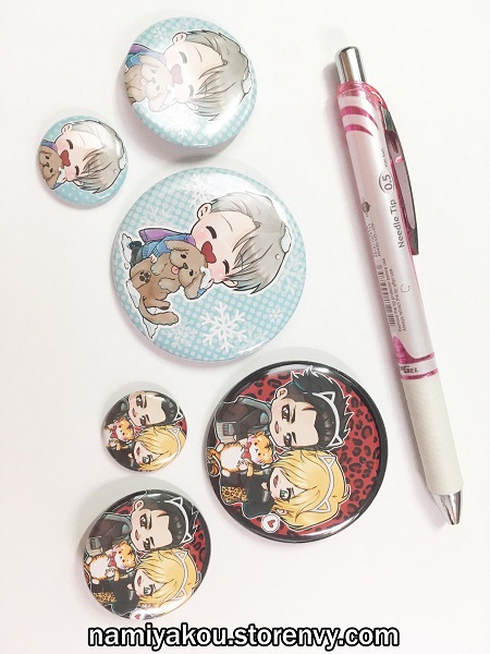 Buttons showing Yuri!! on ICE characters with cat ears and tail!